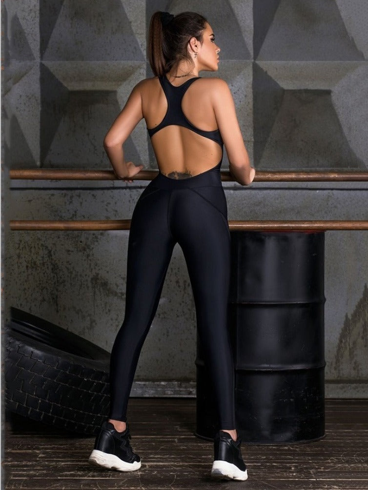 Sexy Solid Color Backless Split-Joint Sports Jumpsuits
